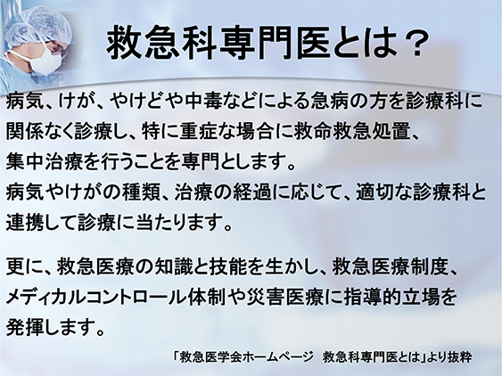 当センターは、日本救急医学会並びに日本集中治療医学会より専門医研修施設に認定されています。